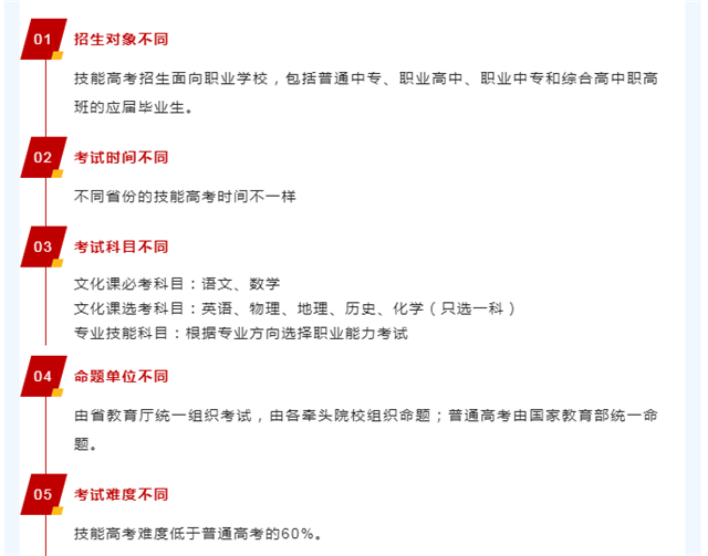 ◆ 加快建立“技能高考”制度,完善“文化素質(zhì)+職業(yè)技能”考試招生辦法,加強(qiáng)省級(jí)統(tǒng)籌,確 保公平公正。